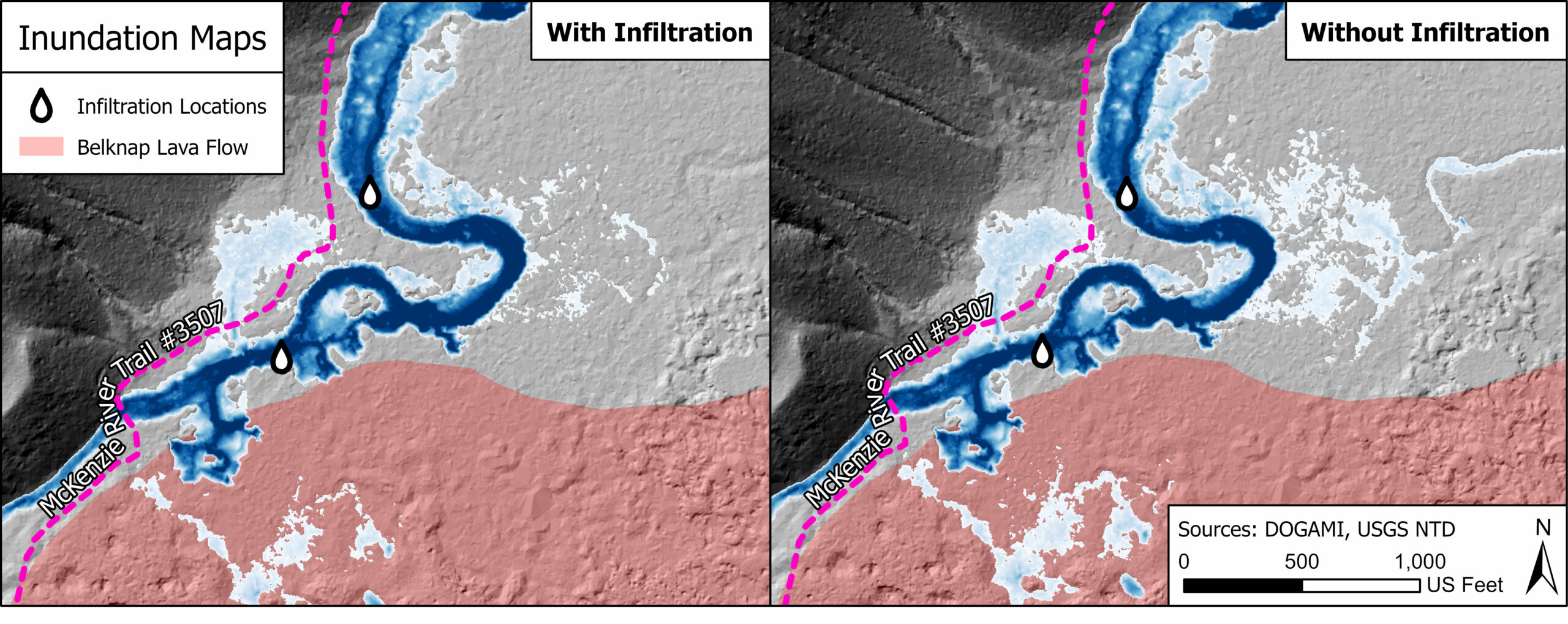 EWEB requested a dam breach analysis and inundation mapping for Carmen Dam in support of FERC Part 12 relicensing requirements. A notable challenge was the presence of significant Infiltration areas to porous subsurface terrain and their effect on the breach flood hydrograph.