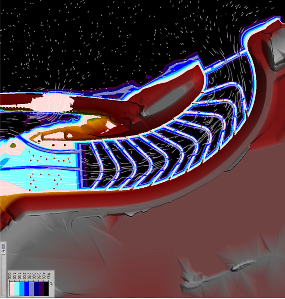As part of the design efforts, Kleinschmidt created a far-field and nearfield2-D HEC-RAS model of the proposed NLFP, starting with existing conditions along approximately 8 miles of the Susquehanna River that included two dams.